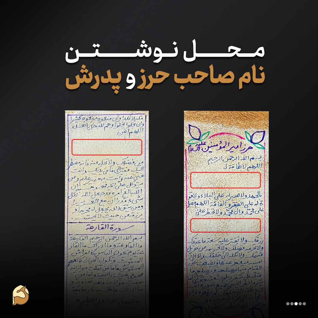 • ذکر شدن نام شخص و پدر سه بار در متن حرز