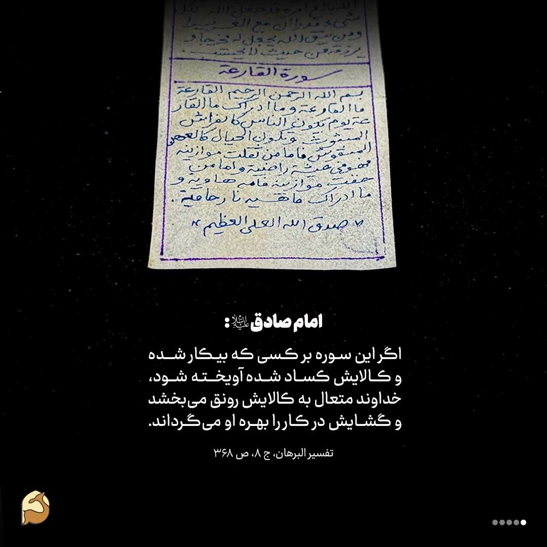 حرز وسعت رزق و روزی از امیر المومنین سلام الله علیه  و حرز قارعه دستنویس روی پوست