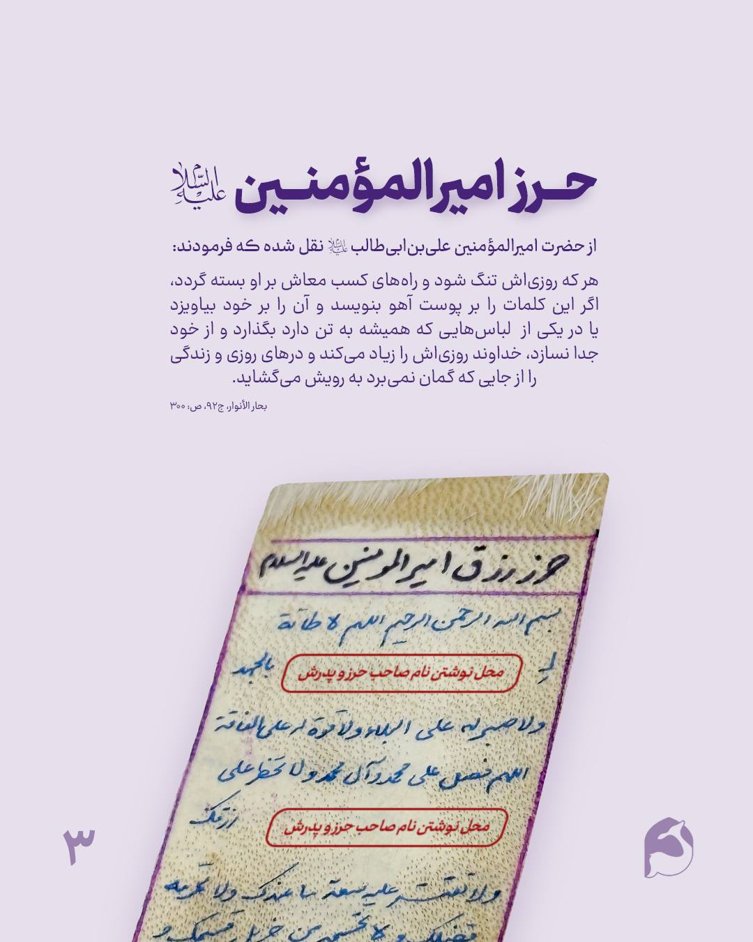 – حرز وسعت رزق و روزی از امیرالمومنین علیه السلام